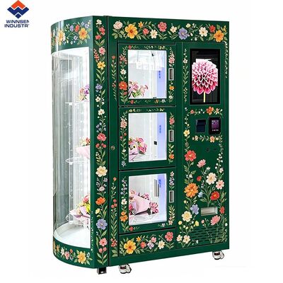 Dieser rotierende Blumenverkaufsautomaten ist mit einem eingebauten Kühl- und Luftbefeuchungssystem ausgestattet.Schaffung einer konstanten Umgebung mit niedrigen Temperaturen und hoher Luftfeuchtigkeit, um 24 Blumensträuße länger frisch zu halten.